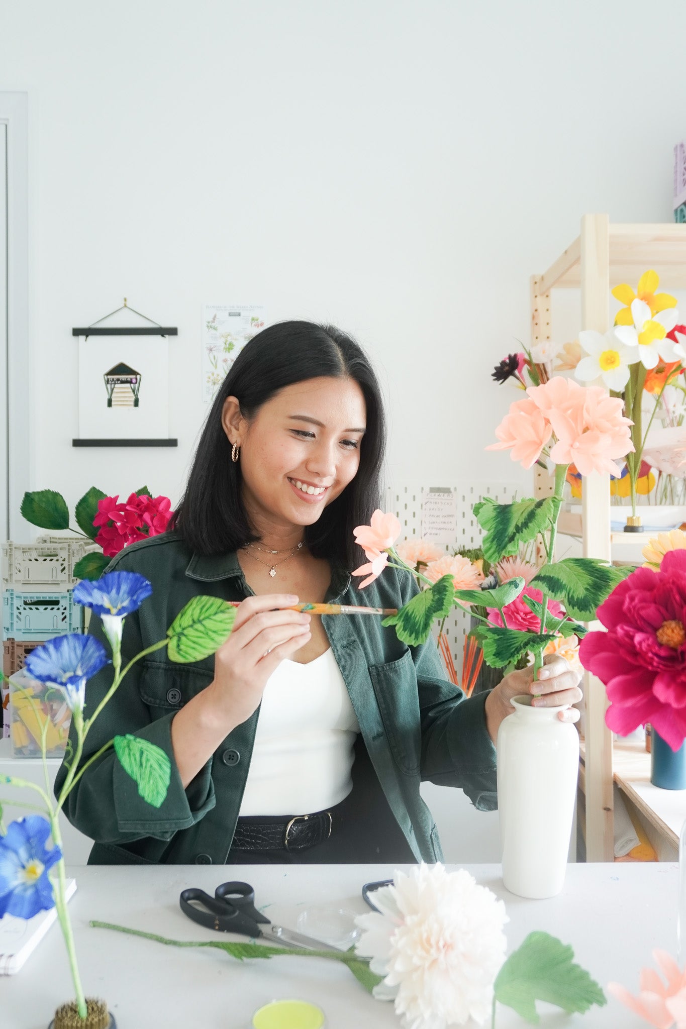 Poy T. Granati discovered her love for paper flowers in 2018 after completing a project called "100 Days of Making" where she made one paper flower a day for one hundred day. Poy then carried her flowers and strolled throughout New York City, inviting people to collaborate with her by organizing workshops, doing pop-ups, and team building for businesses and communities. The studio is now based in NYC